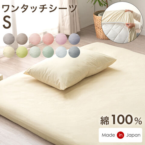 選べる12色 日本製 綿100% ワンタッチシーツ 敷布団カバー シングル 敷布団 カバー ベッドシーツ ベッドカバー ワンタッチシーツ 洗える コットン 国産 おしゃれ 22700128〔クリームベージュ〕