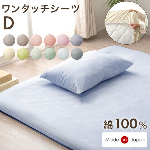 選べる12色 日本製 綿100% ワンタッチシーツ 敷布団カバー ダブル 敷布団 カバー ベッドシーツ ベッドカバー ワンタッチシーツ 洗える コットン 国産 おしゃれ 22700130〔ディープブルー〕