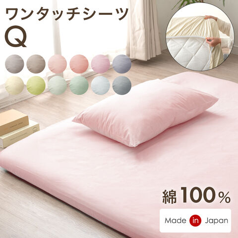 選べる12色 日本製 綿100% ワンタッチシーツ 敷布団カバー クイーン 敷布団 カバー ベッドシーツ ベッドカバー ワンタッチシーツ 洗える コットン 国産 おしゃれ 22700131〔ペールピンク〕