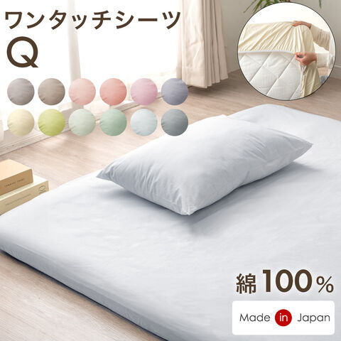 選べる12色 日本製 綿100% ワンタッチシーツ 敷布団カバー クイーン 敷布団 カバー ベッドシーツ ベッドカバー ワンタッチシーツ 洗える コットン 国産 おしゃれ 22700131〔クレイブルー〕