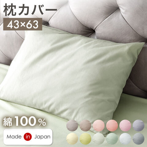 選べる12色 日本製 綿100% 枕カバー 43×63cm 封筒式 まくらカバー ピローカバー 洗える コットン 封筒型 天然素材 国産 無地 シンプル おしゃれ 可愛い 22700132〔セージグリーン〕
