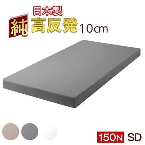 復元保証付き マットレス セミダブル 国産 高品質 極厚10cm 高反発マットレス 硬め 150N 10cm 高反発 日本製 ウレタンマット ウレタン マット 敷布団 敷き布団 オーバーレイ 固め 23300042〔グレー〕