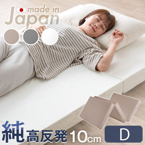 復元保証付き 三つ折り マットレス ダブル 国産 高品質 極厚10cm 高反発マットレス 硬め 150N 10cm 高反発 日本製 ウレタンマット マット コンパクト 3つ折り 3折 敷布団 23300046〔ホワイト〕