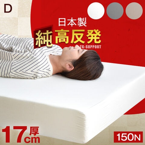 復元保証付き マットレス ダブル 国産 高品質 超極厚17cm 高反発マットレス 硬め 150N 高反発 日本製 ウレタンマット ウレタン マット 敷布団 敷き布団 オーバーレイ 固め 厚め 23300049〔ホワイト〕