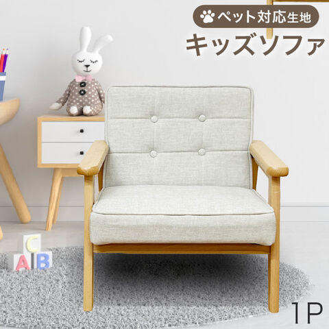 キッズソファ ペット対応 1人掛け ひっかきに強い キッズソファー チャイルドソファ ペットソファ キッズ用 子供用 ファブリック 木枠 木製 一人用 1P 北欧 おしゃれ 猫 犬 ひっかき 強い 猫家具 23500000〔ベージュ〕