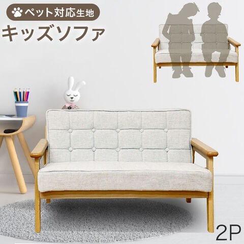 キッズソファ ペット対応 2人掛け ひっかきに強い キッズソファー チャイルドソファ ペットソファ キッズ用 子供用 ファブリック 木枠 木製 二人用 2P 北欧 おしゃれ 猫 犬 ひっかき 強い 猫家具 23500003〔ベージュ〕