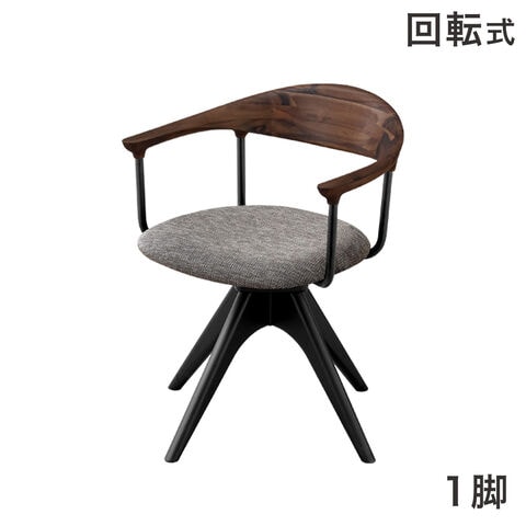 回転 ダイニングチェア 天然木 アカシア 1脚 回転式 ダイニングチェア 木製チェア 回転チェア 食卓椅子 木製 肘付き 北欧 おしゃれ 23500002〔背もたれ:ブラウン/座面:グレー(ファブリック)〕