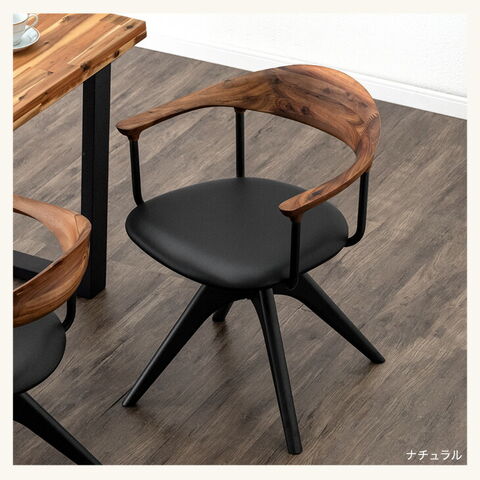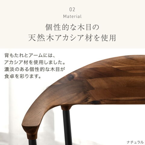・背もたれとアームが生み出す美しい曲線 ・ぬくもりある天然木アカシア材を使用 ・肘付き&回転式で立ち座りらくらく ・張地は選べる2タイプ -傷や汚れに強いPVC -年中さらっと快適ファブリック ・ブラック脚でモダンに仕上げる |