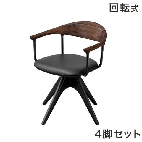 回転 ダイニングチェア 天然木 アカシア 4脚セット 回転式 ダイニングチェア 木製チェア 回転チェア 食卓椅子 木製 肘付き 北欧 おしゃれ 99900967〔背もたれ:ブラウン/座面:ブラック(PVC)〕