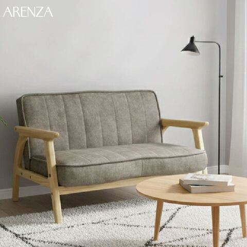 天然木フレーム ソファ 2人掛け ファブリック リビングソファ ソファー ウッドフレーム 木枠 天然木 木製 フレーム 2人掛 2P 2人 コンパクト 北欧 モダン おしゃれ【超大型】 23500010〔ライトブラウン〕