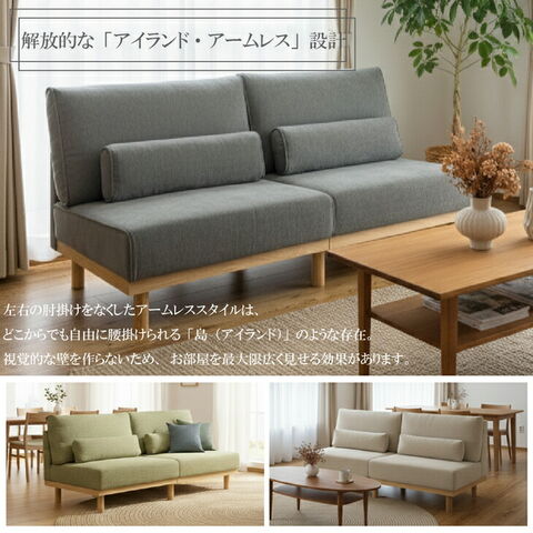 アームレスソファ クッション付き 3人掛け ロボット掃除機対応 ソファ ソファー アームレス クッション アームレスソファー 3P 3人 3人掛け おしゃれ ファブリック 木枠 木製 北欧【超大型】23500012〔グレー〕