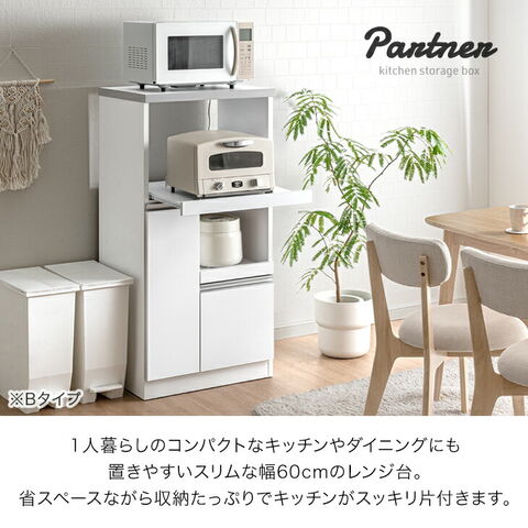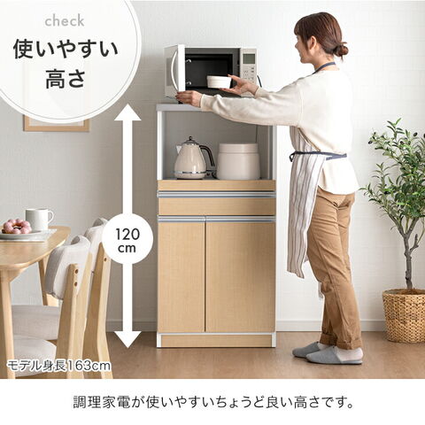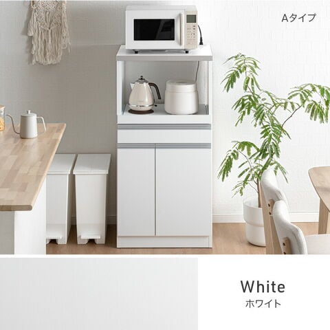 日本製 レンジ台 完成品 米びつ付 食器棚 キッチンボード レンジ ラック 幅60 スリム 省スペース コンセント レンジボード 台所収納 キッチン収納 大川家具 キッチン 23570026〔【A】ホワイト〕