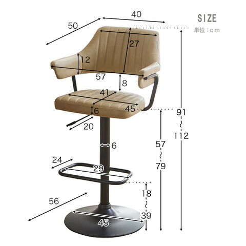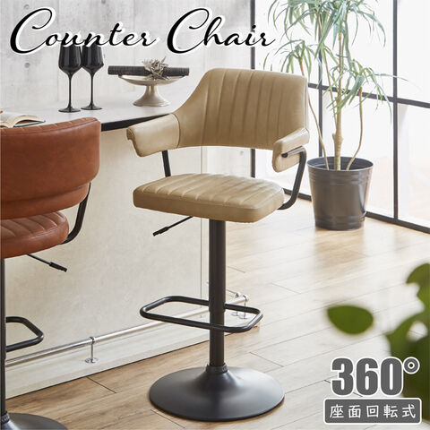 カウンターチェア バーチェア 背もたれ付き ハイチェア スツール ハイスツール バーカウンター 背もたれ クッション 黒脚 昇降 回転 モダン 北欧 おしゃれ ヴィンテージ カフェ 23570212〔ベージュ〕