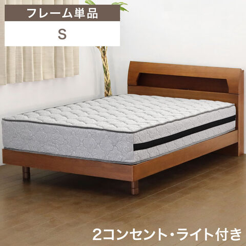 天然木 宮付き シングル ベッド LED 2口コンセント付 ベッドフレーム ベットフレーム 高さ3段階 すのこ ベッド すのこベッド ローベッド ライト コンセント 北欧 おしゃれ 23570231〔ミディアムウォールナット〕【予約】5月下旬※5/31までに出荷予定