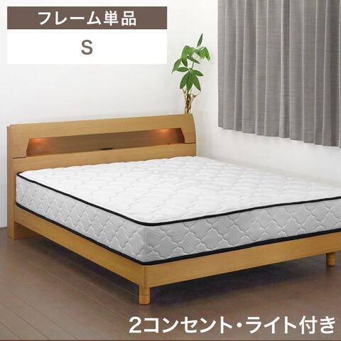 天然木 宮付き シングル ベッド LED 2口コンセント付 ベッドフレーム ベットフレーム 高さ3段階 すのこ ベッド すのこベッド ローベッド ライト コンセント 北欧 おしゃれ 23570231〔ナチュラルオーク〕