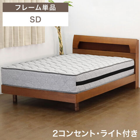 天然木 宮付き セミダブル ベッド LED 2口コンセント付 ベッドフレーム ベットフレーム 高さ3段階 すのこ ベッド すのこベッド ローベッド ライト コンセント 北欧 おしゃれ 23570232〔ミディアムウォールナット〕【予約】5月下旬※5/31までに出荷予定