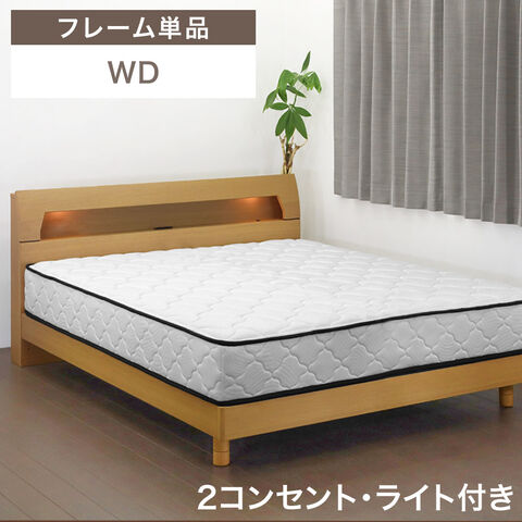 天然木 宮付き ワイドダブル ベッド LED 2口コンセント付 ベッドフレーム ベットフレーム 高さ3段階 すのこ ベッド すのこベッド ローベッド ライト コンセント 北欧 おしゃれ 23570234〔ナチュラルオーク〕【予約】5月下旬※5/31までに出荷予定