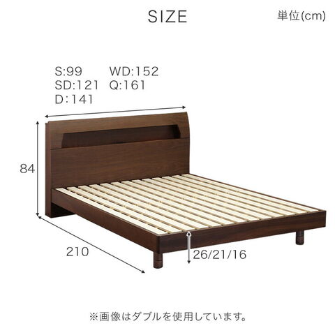 | 素材 | フレーム:天然木化粧繊維板 Lダークウォールナット、ミディアムウォールナット:ウォールナット材 Lナチュラルオーク:オーク材 すのこ:積層合板 脚:ラバーウッド |