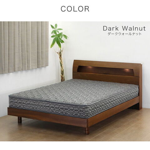 天然木 宮付き クイーン ベッド LED 2口コンセント付 ベッドフレーム ベットフレーム 高さ3段階 すのこ ベッド すのこベッド ローベッド ライト コンセント 北欧 おしゃれ 23570235〔ダークウォールナット〕