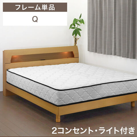 天然木 宮付き クイーン ベッド LED 2口コンセント付 ベッドフレーム ベットフレーム 高さ3段階 すのこ ベッド すのこベッド ローベッド ライト コンセント 北欧 おしゃれ 23570235〔ナチュラルオーク〕