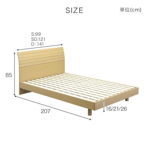 | 素材 | フレーム:タモ突版化粧繊維板(ウレタン塗装) すのこ:積層合板 脚:ラバーウッド |