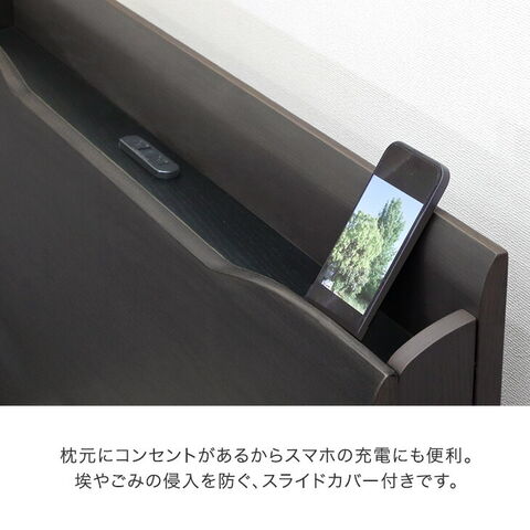 ・使いやすさを追求した ヘッドボード ┗寝ている間にスマホの充電が可能なスライド式2口コンセント ・床高さはスタイルに合わせて選べる高さ3段階 ・お掃除ロボット対応 ・通気性抜群のすのこ仕様 |