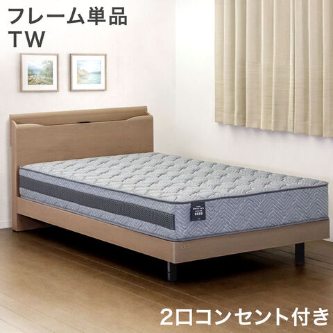 天然木 オーク 宮付き ベッド 2口コンセント付 ツイン ベッドフレーム ベットフレーム 単品 高さ3段階 ベッド ベット すのこ すのこベッド ローベッド 木 コンセント 北欧 おしゃれ 23570247〔パステルベージュ〕