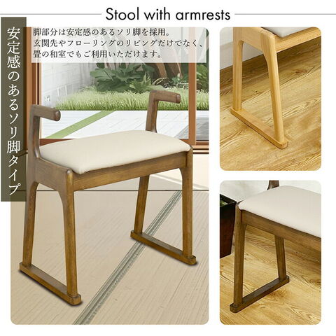 お掃除ロボ対応 肘付き サポートチェア 完成品 天然木 スツール 幅51cm 玄関椅子 木製 立ち上がり補助 腰掛け椅子 肘掛け椅子 玄関 手すり付 高齢者 介護 介助 北欧 シンプル おしゃれ 母の日 父の日 敬老の日 23570257〔ブラウン〕
