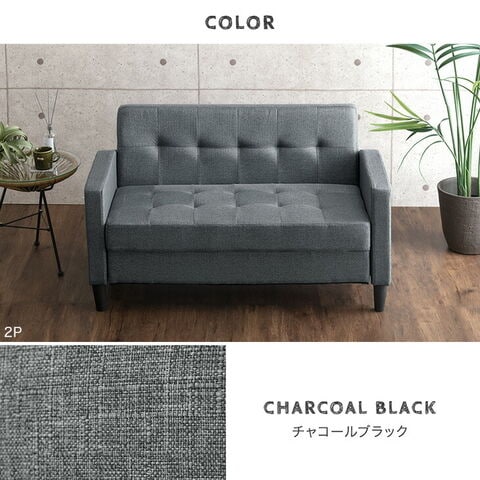 ソファー 2人掛け 肘掛 リビングソファ 肘あり ファブリック生地 二人掛け ローソファ ウレタン 2P sofa おしゃれ 北欧 モダン シンプル 【超大型】23570264〔チャコールブラック〕