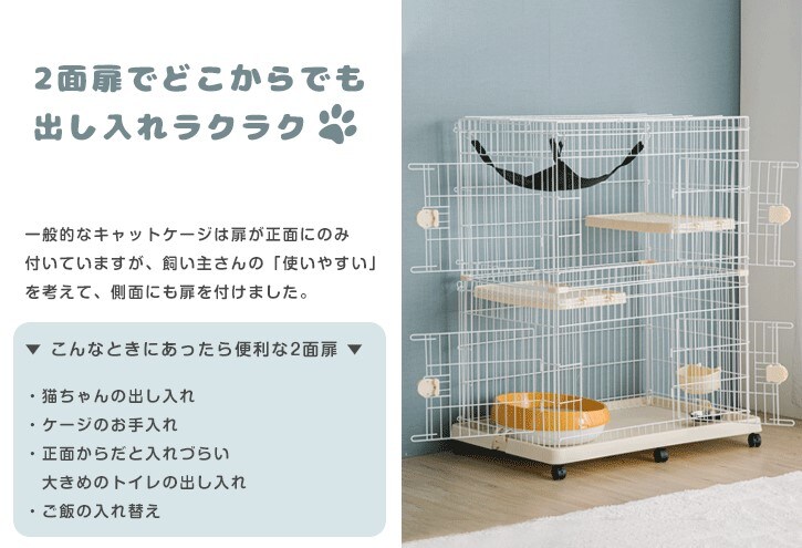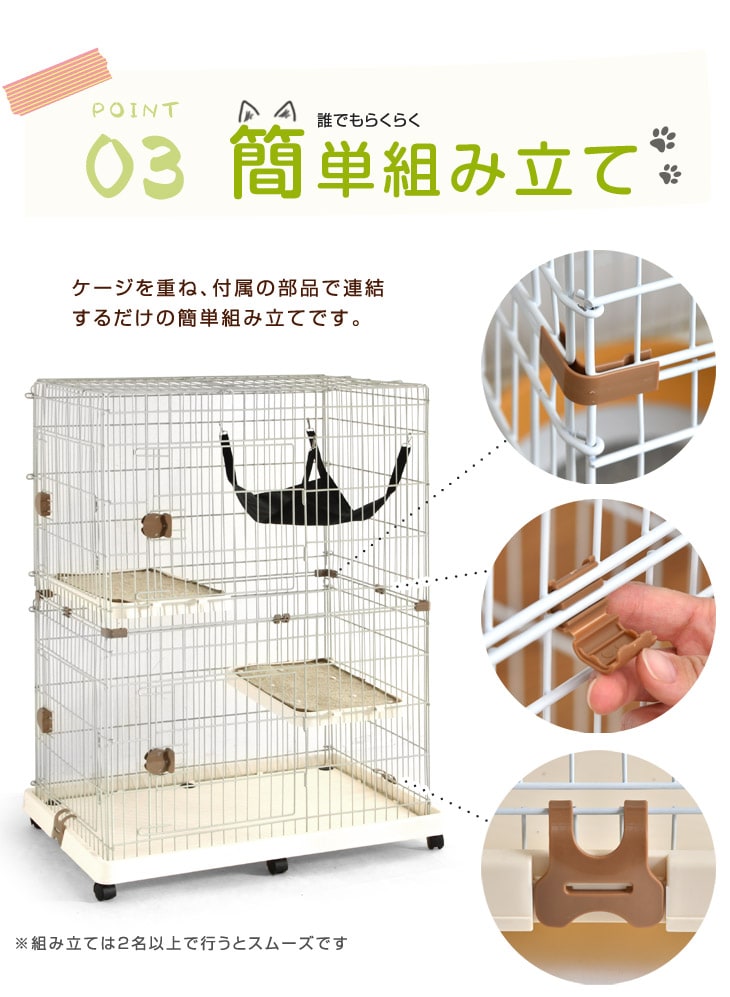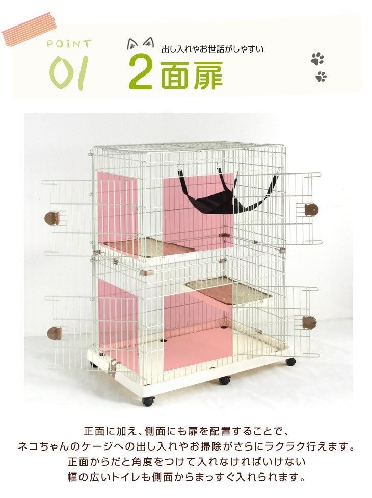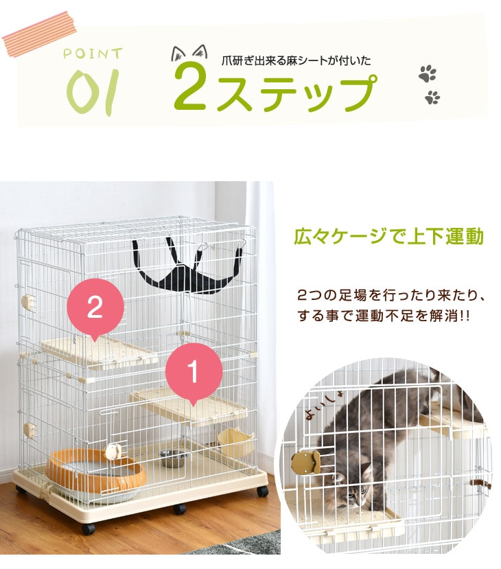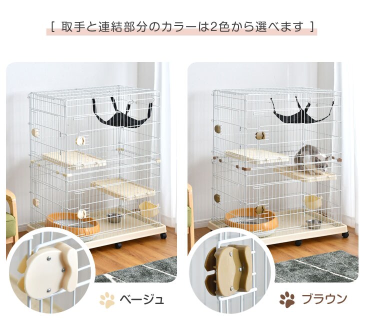 キャットケージ 《ブラウン》 ハンモック付 2段 水飲み皿 キャスター 多段 猫ケージ 猫 キャット ケージ 脱走防止 2匹 ペット ゲージ キャットゲージ 檻 ねこ 24610054 BR