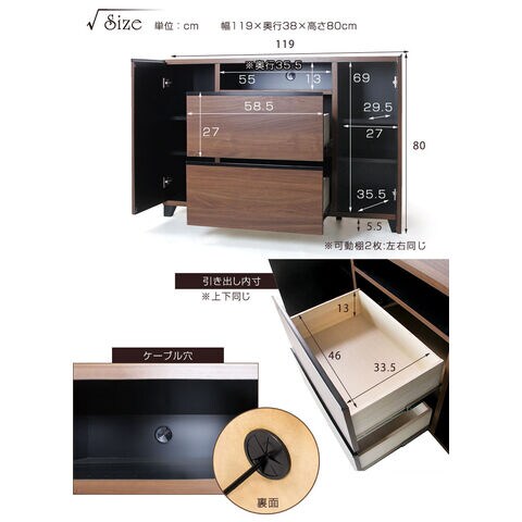 外寸:幅119×奥行38×高さ80cm |