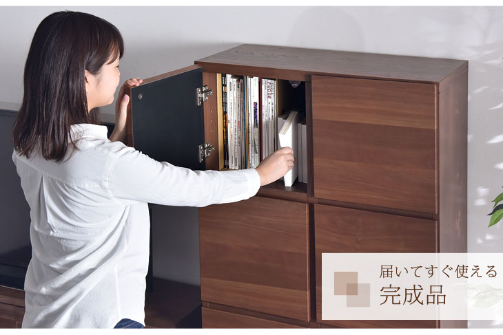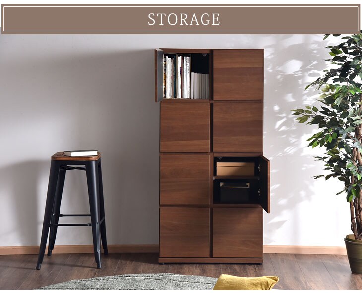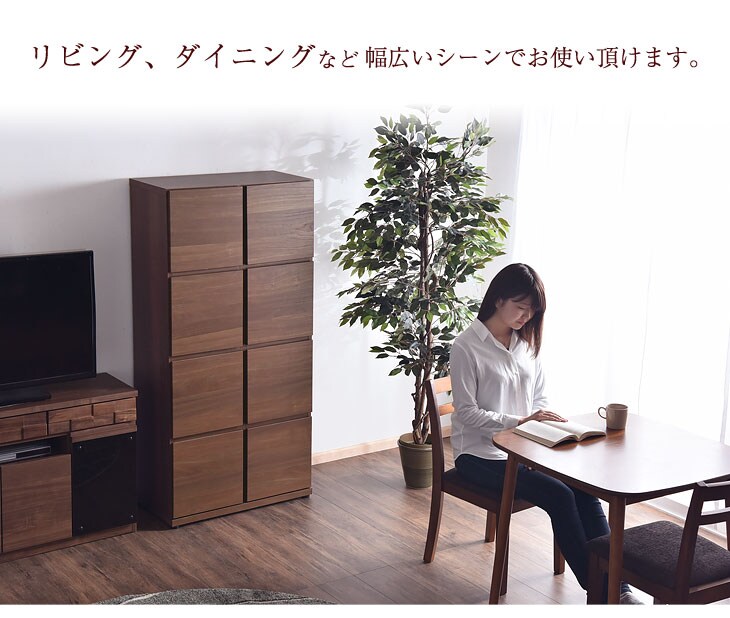 国産 完成品 キャビネット 木製 本棚 大川家具 収納 キッチン 幅73 2列4段 高さ150cm 可動棚 北欧 ラック シンプル 扉付き棚 収納棚 扉付き チェスト 日本製【超大型】 24900023