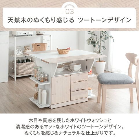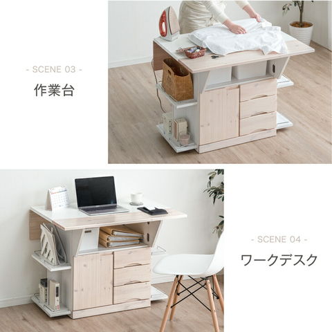 | ・4wayでマルチに活躍 両バタフライ天板 ・天然木のぬくもり感じる ツートーンデザイン ・テーブル、デスクとしても使いやすい 高さ70cm ・移動や掃除もラクラク キャスター付き ・たっぷりしまえる 豊富な収納スペース ・安心の日本製 |
