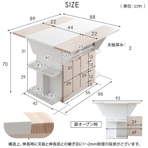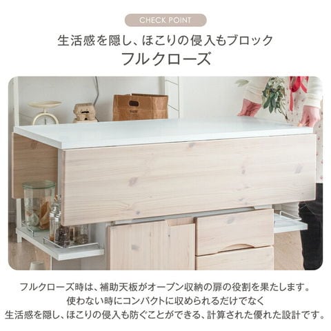 | 前板・補助天板:パイン無垢材(ウレタン塗装) 天板:ポリ化粧繊維板 |