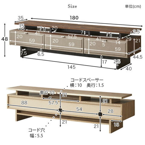| サイズ | 外寸:幅180x奥行48x高さ48cm |
