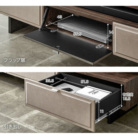 | 素材 | 天板:強化紙化粧板 引出/フラップ扉:PVCレザー |