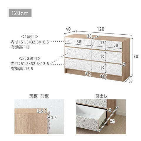 テラゾー柄 国産 チェスト タンス Terrafurni -テラファニ- 120cm 3段 完成品 引き出し 収納 石目 木目 木目調 ハイチェスト 収納チェスト 大容量 衣類収納 日本製 北欧 おしゃれ【超大型】24900121