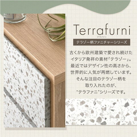 ・テラゾー柄と木目調を合わせたナチュラルモダンスタイル ・幅80/120cm 選べる2サイズ ・奥の物も取り出しやすいフルオープンスライドレール引き出し ・届いてすぐに使える完成品 ・安心の日本製 -大川家具- |