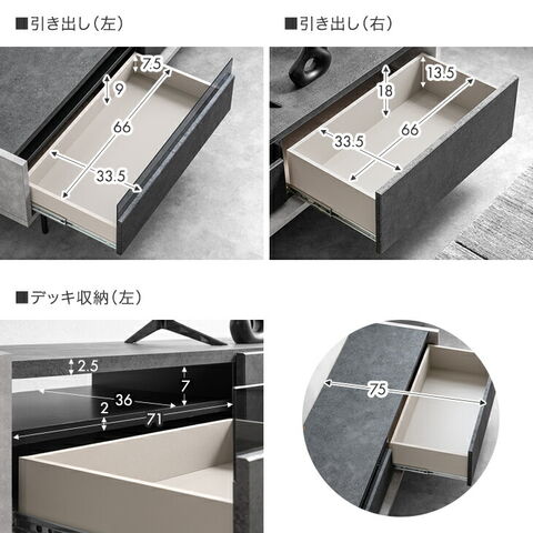 ・スタイリッシュなツートンデザイン ・引き出しは奥まで取り出しやすい フルオープンスライドレール採用 ・デッキ収納部は閉めたままリモコン操作OK ・安心の日本製 -大川家具- |