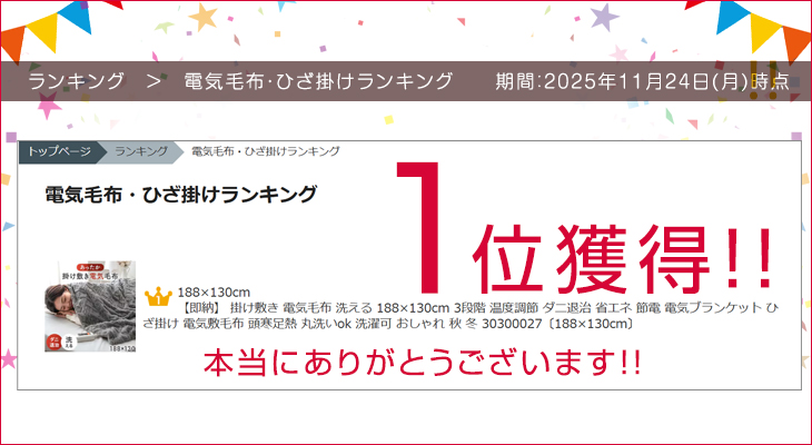 ランキング1位 掛け敷き 電気毛布 洗える 188×130cm 3段階 温度調節 ダニ退治 省エネ 節電 電気ブランケット ひざ掛け 電気敷毛布 頭寒足熱 丸洗いok 洗濯可 おしゃれ 秋 冬 30300027〔188×130cm〕
