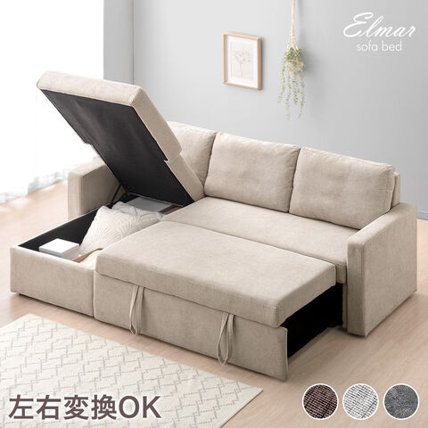 ・引っ張るだけでフットレストが出現!ワンタッチスライド式 ・たっぷり156L 跳ね上げ収納付き ・オールシーズン快適なファブリック生地 ・お部屋に合わせて左右変換OK |