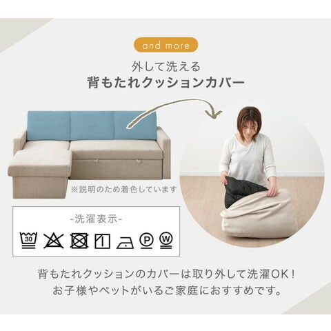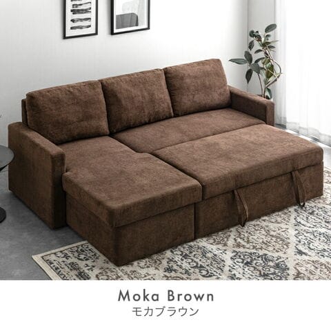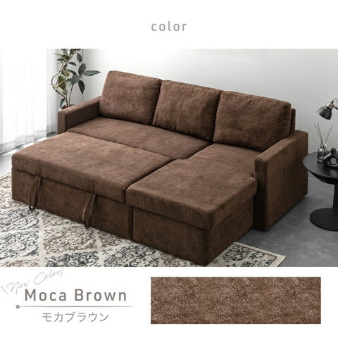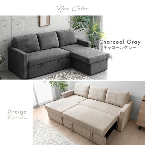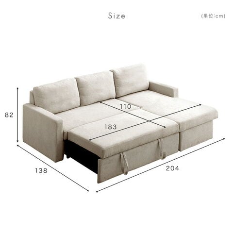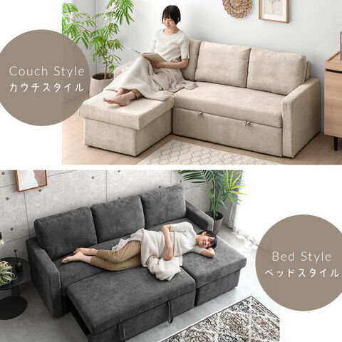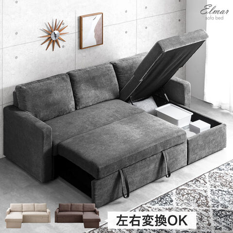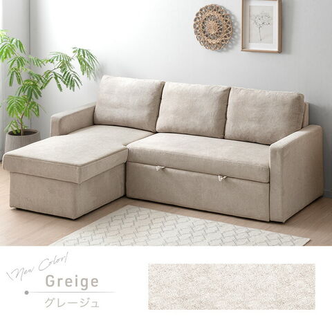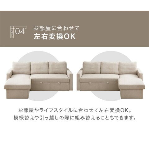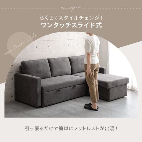 ・引っ張るだけでフットレストが出現!ワンタッチスライド式 ・たっぷり156L 跳ね上げ収納付き ・オールシーズン快適なファブリック生地 ・お部屋に合わせて左右変換OK |