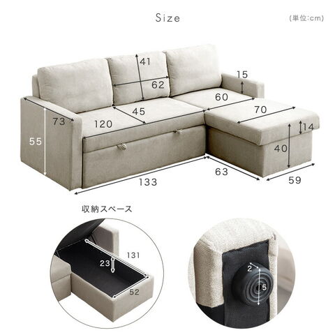 | 耐荷重 | ソファ全体:約250kg 引き出し部:約100kg |