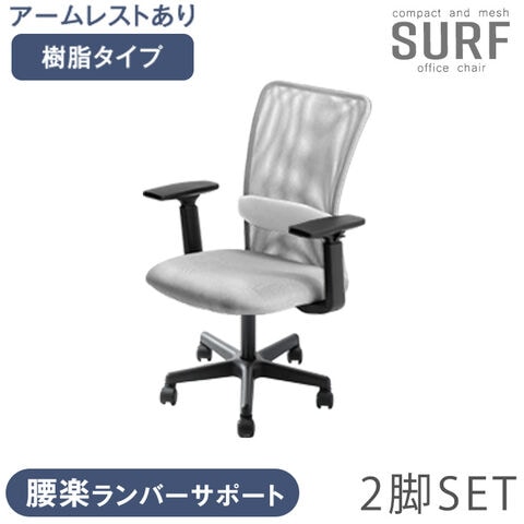 RENEW 【樹脂タイプ】 アームレスト付き オフィスチェア 2脚セット ランバーサポート付 コンパクト ワークチェア メッシュ メッシュバック 事務椅子 デスクチェア チェア 椅子 PCチェア パソコンチェアー 99900044〔アッシュグレー〕