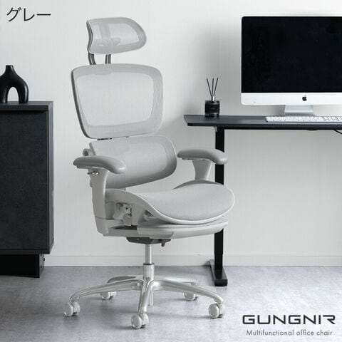 【新発売プライス】高機能 オフィスチェア 座面スライド ランバーサポート リクライニング 3Dアーム メッシュ デスクチェア フットレスト オットマン 肘付き アームレスト ヘッドレスト 31500060〔グレー〕【予約】1月上旬※1/10までに出荷予定
