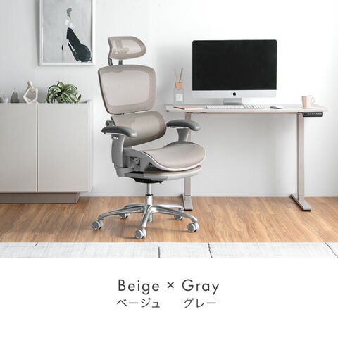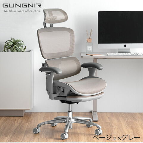【新発売プライス】高機能 オフィスチェア 座面スライド ランバーサポート リクライニング 3Dアーム メッシュ デスクチェア フットレスト オットマン 肘付き アームレスト ヘッドレスト 31500060〔ベージュ×グレー〕【予約】1月上旬※1/10までに出荷予定