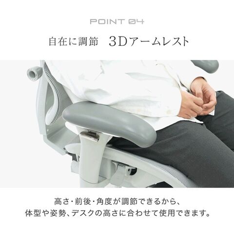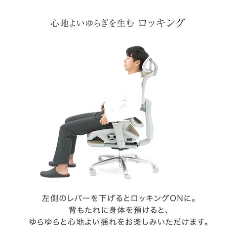 ・脚を伸ばして休憩できるフットレスト ・一息つくのに最適 最大123°ロッキング ・高さ/角度を自由に調節できるヘッドレスト ・角度調節可能なランバーサポート ・微調節できる3Dアームレスト ・体格に合わせて座面前後スライドOK ・オールメッシュでいつでも快適な座り心地 ・デスクや体型に合わせて使えるガス昇降 ・重厚感あるアルミダイキャストフレーム ・床に傷がつきにくいPUキャスター |