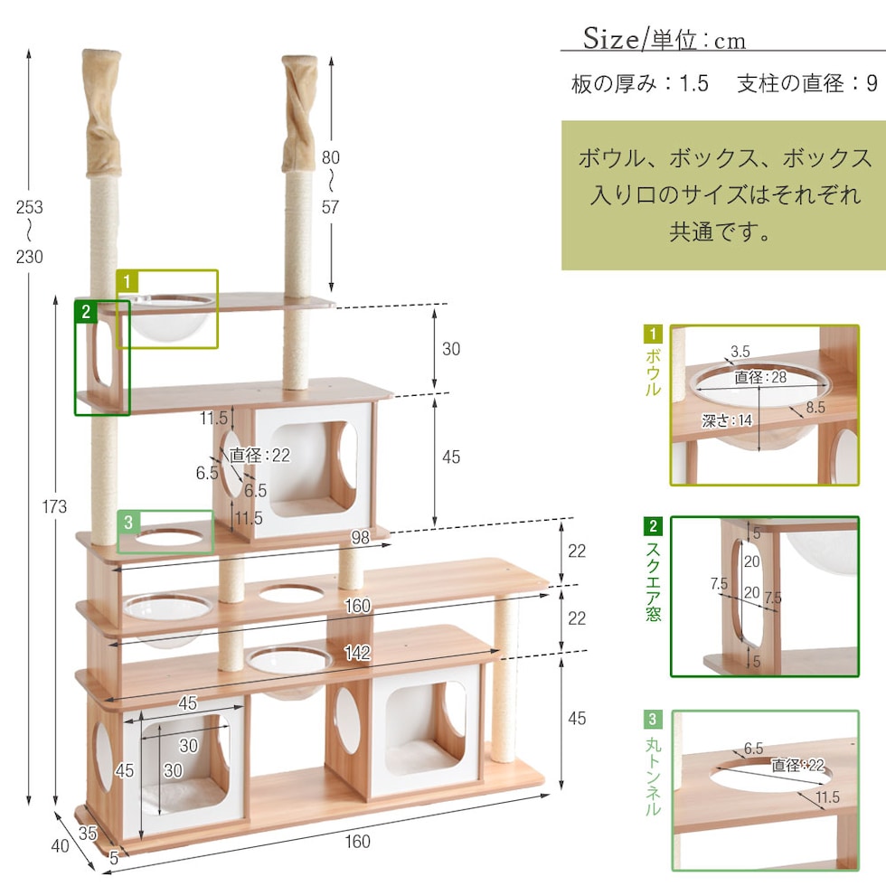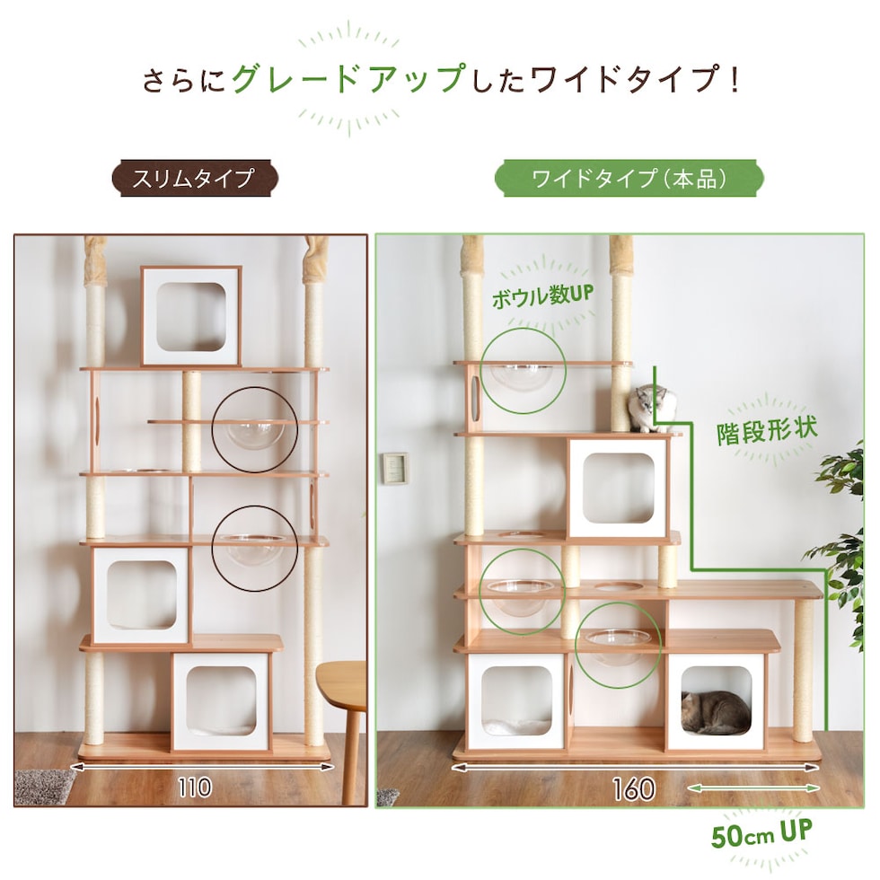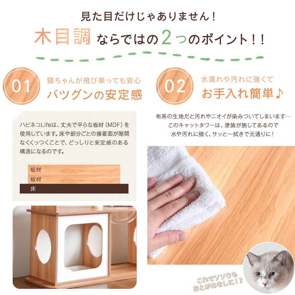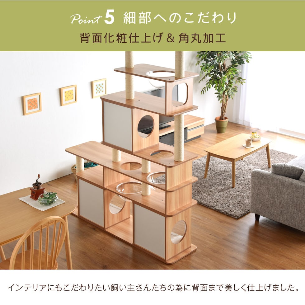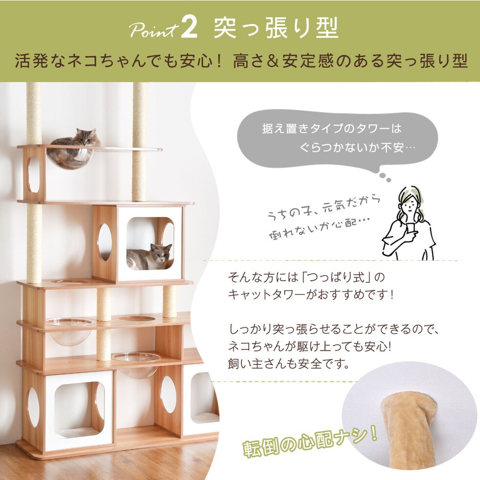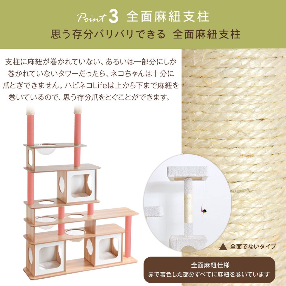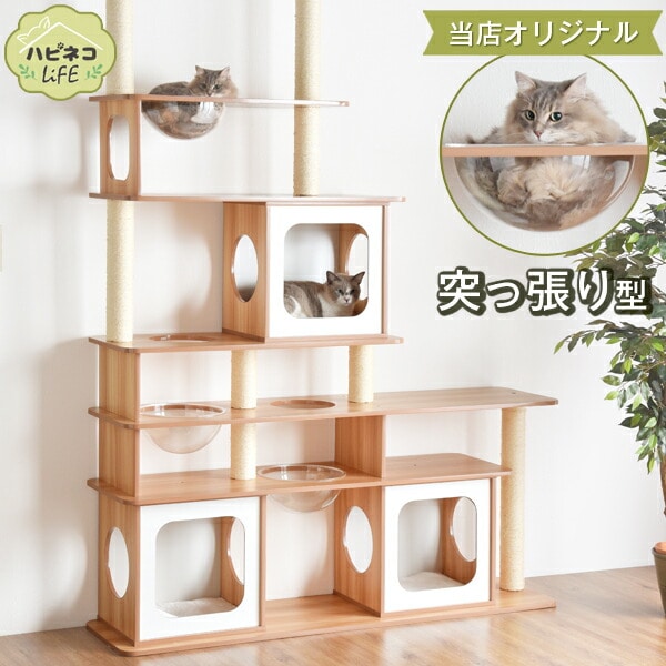【即納】 キャットタワー 木目調タイプ 160×230~235cm お手入れ簡単 麻紐 角丸加工 突っ張り ワイドタイプ ハピネコ ナチュラル 32000050 【予約】8月下旬※8/30までに出荷予定