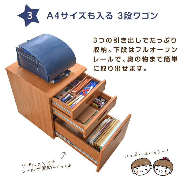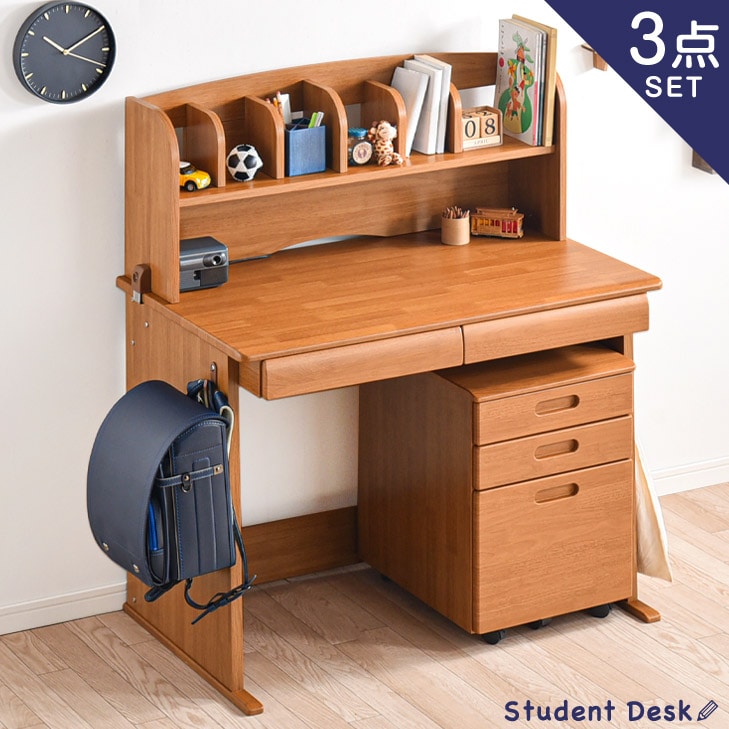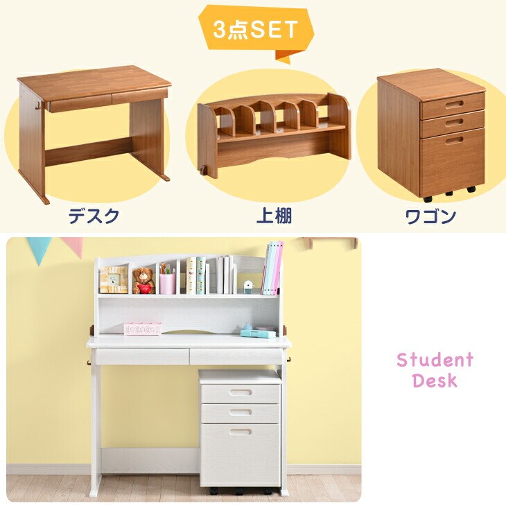 【即納】 学習机 3点セット デスク 上棚 ワゴン 女の子カラー 男の子カラー 学習デスク 勉強机 上棚 学習机セット 学習デスクセット 学習デスク 勉強机 パソコンデスク 入学祝 男の子 33010058〔ライトブラウン〕