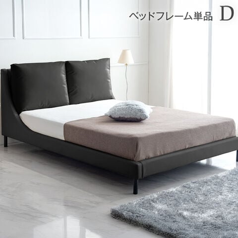 クッション付き レザー調 ベッド ダブル フレームのみ ベット ダブルベット ローベッド 脚付き おしゃれ ロースタイル フレーム ベッドフレーム クッション エレガント 【超大型】33010150〔ブラック〕